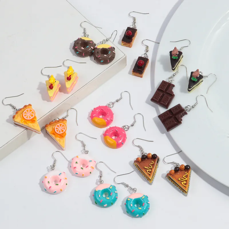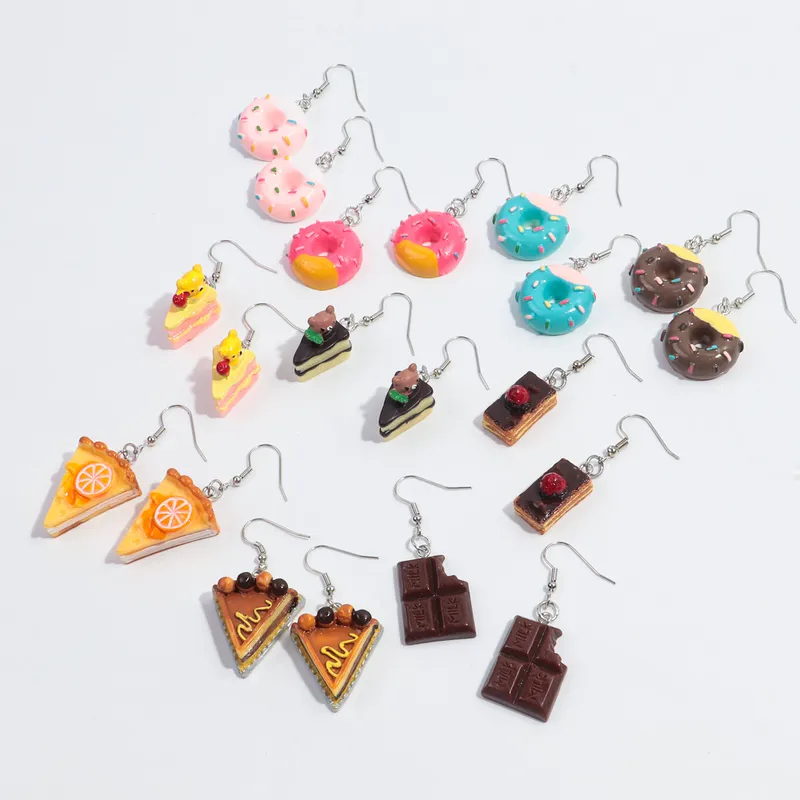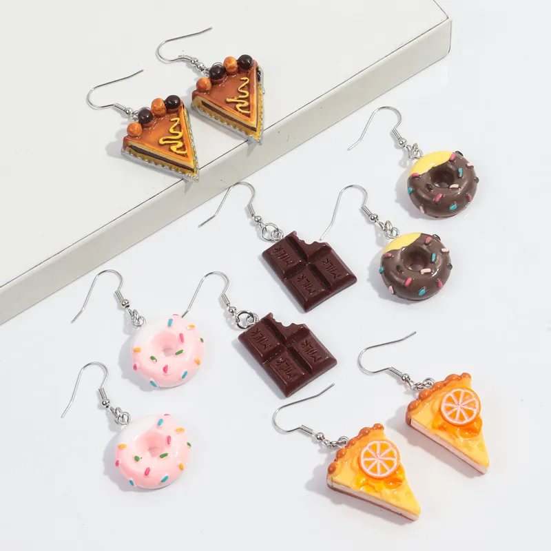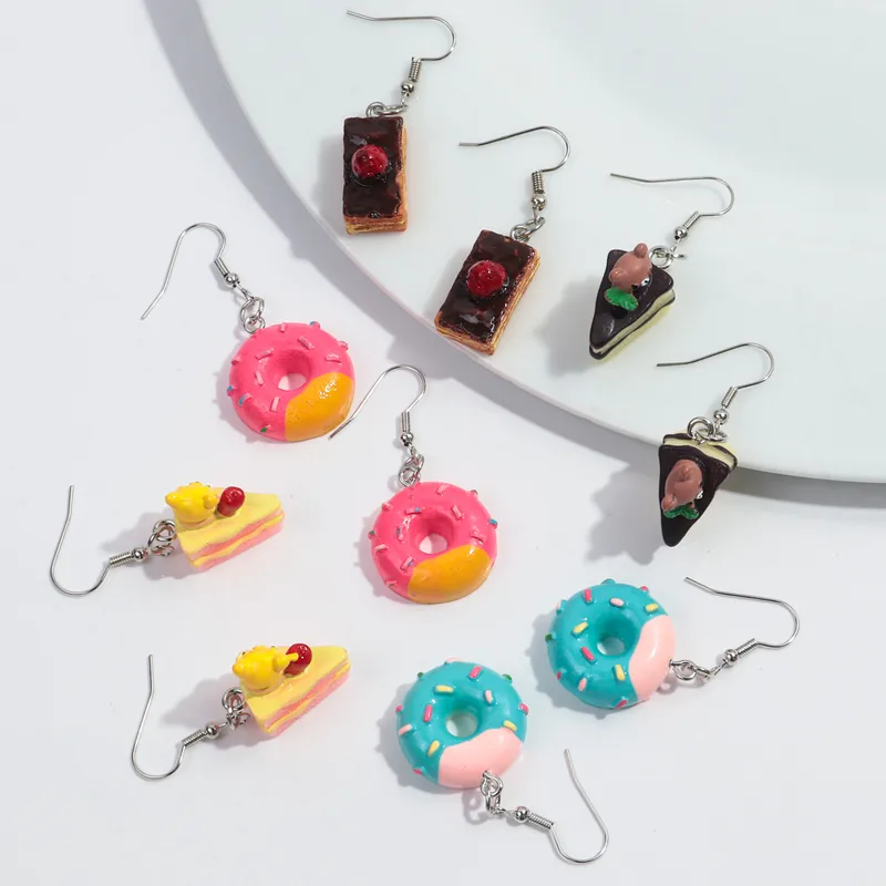 Wholesale Fashion Trendy Cute Sweet Style Student Girl Donut Food Hip Hop Punk Nightclub Earrings Earrings