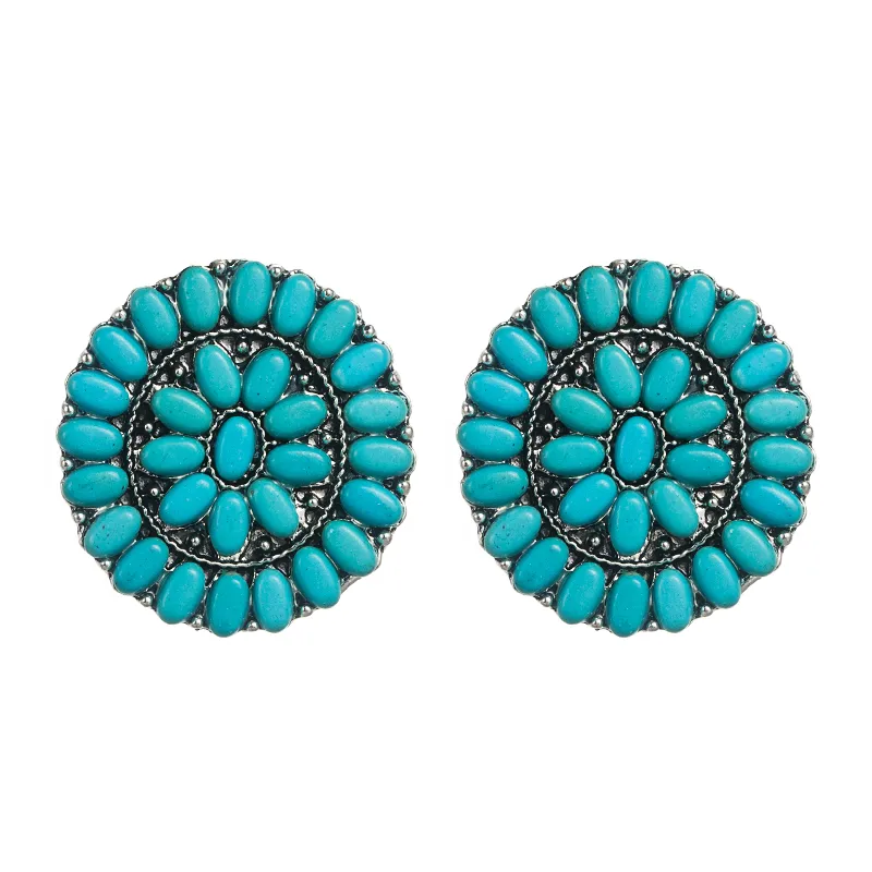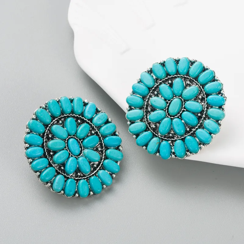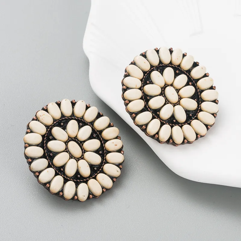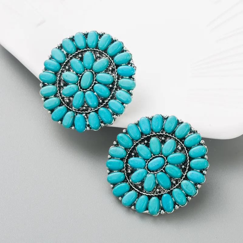 Wholesale fashion turquoise blue white beads alloy stud earrings