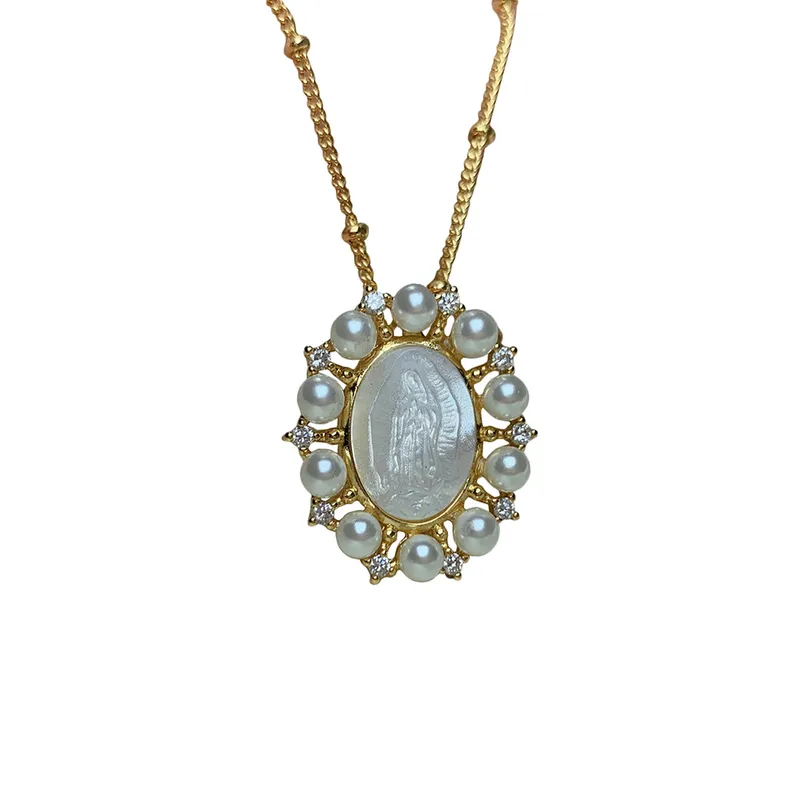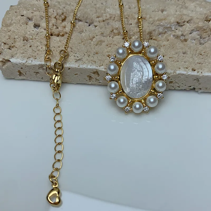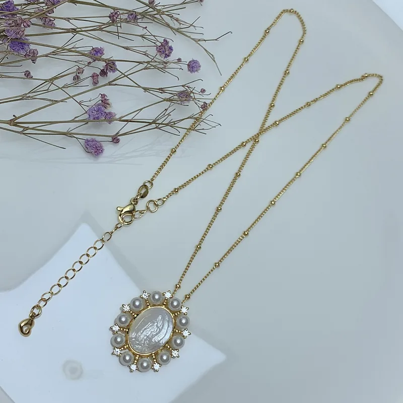 Wholesale fashion virgin mary copper inlay artificial pearls shell necklace 1 piece