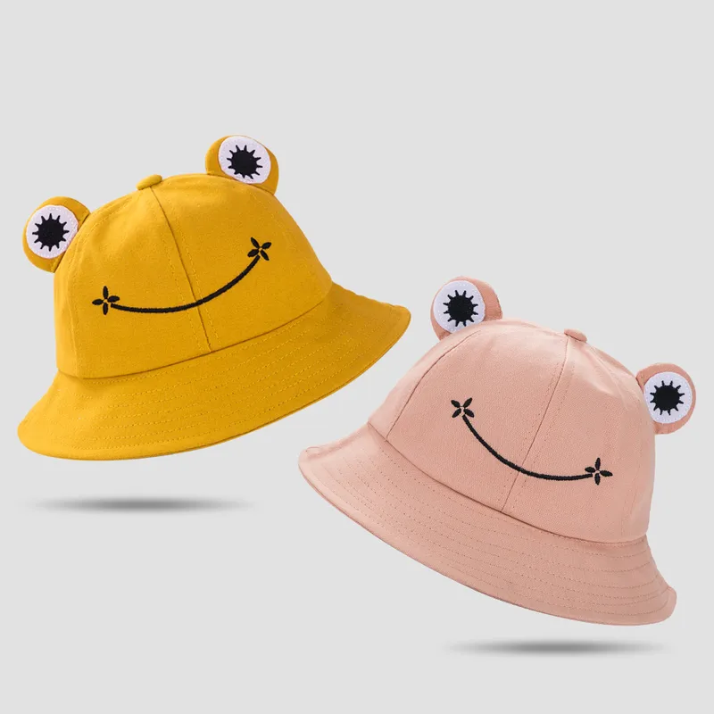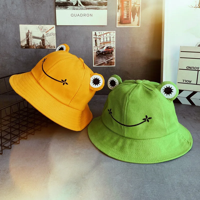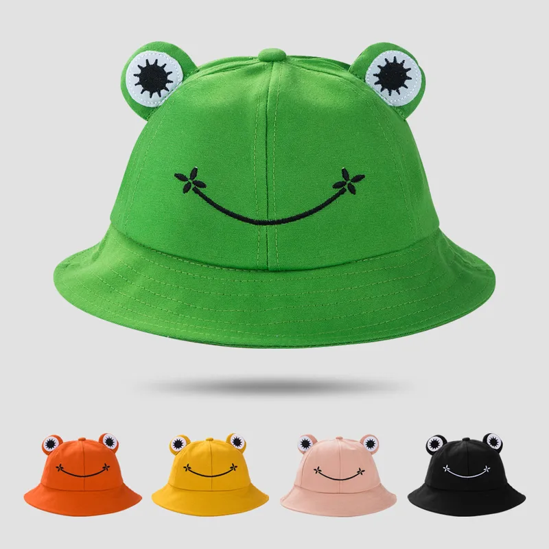 Fisherman Hat Korean Version Cute Art Frog Smile Embroidery Sun Hat Warm Basin Hat