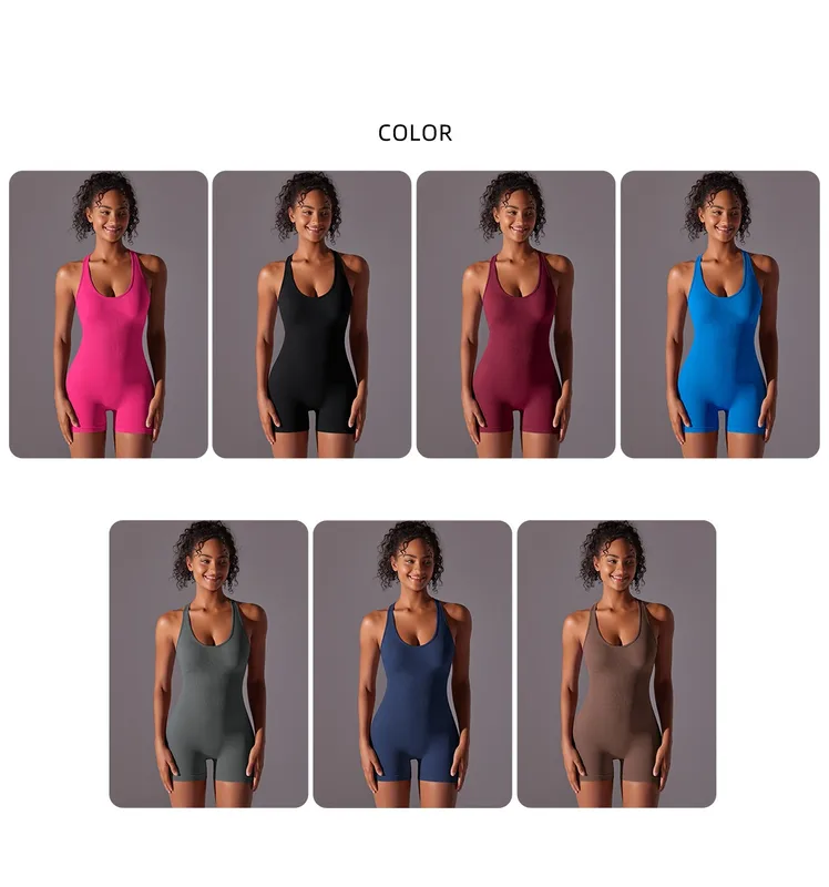 Wholesale Fitness Solid Color Nylon Cotton Blend U Neck Backless Tracksuit Rompers