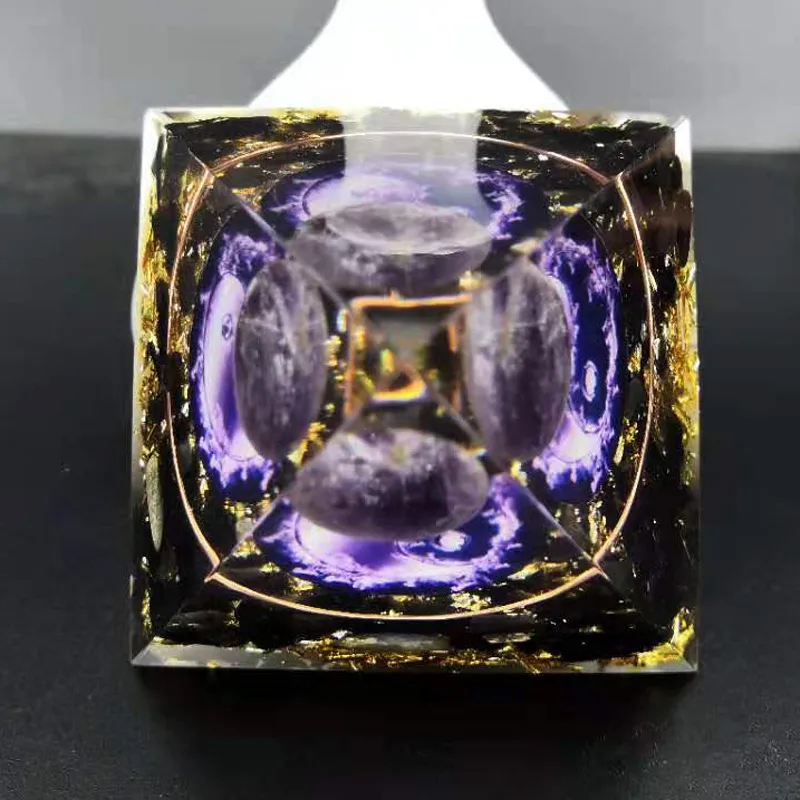Foreign Trade 3D Rune Black Yao Resin Natural Crystal Energy Ball Pyramid Ornaments Home Office