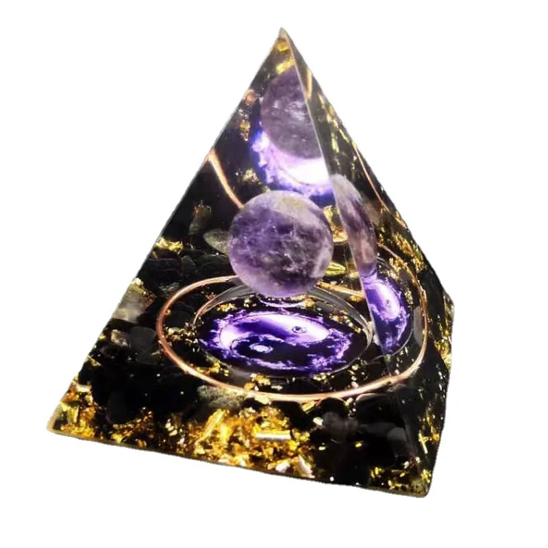 Wholesale Foreign Trade 3D Rune Black Yao Resin Natural Crystal Energy Ball Pyramid Ornaments Home Office