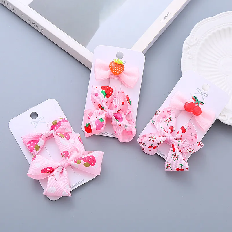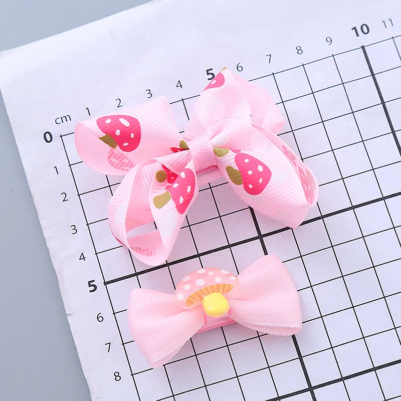 Wholesale girl's sweet cherry strawberry bow knot cloth hair clip