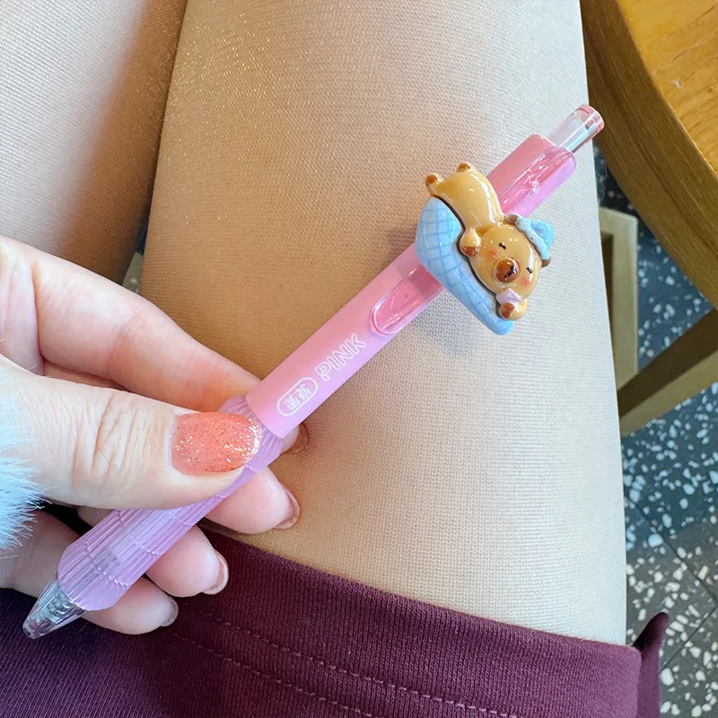 Wholesale Girl Cute Cartoon Gel Pen Cute Creative Push Type Capabala Super Cute Large Capacity Student Pen