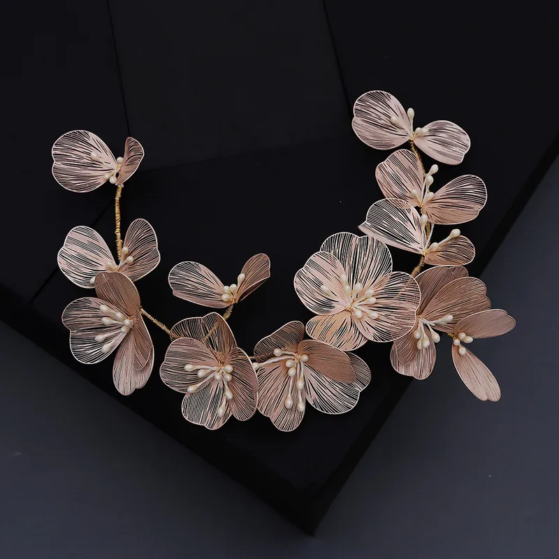 Wholesale gold flower petal hairband bride wedding headdress pearl handmade headband dress hair accessories wholesale nihaowholesale nhhs226725