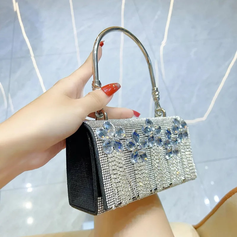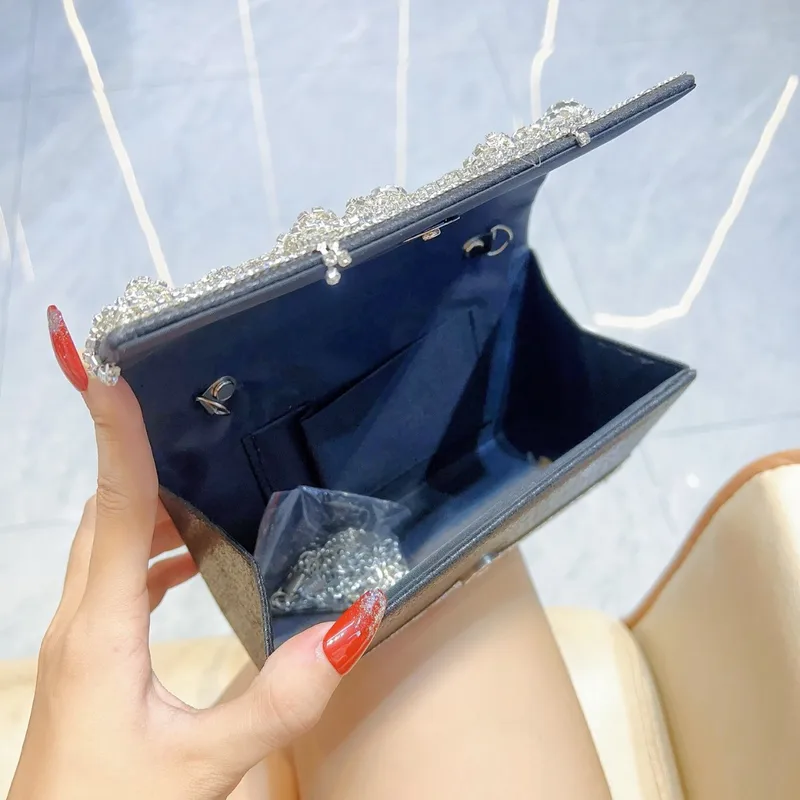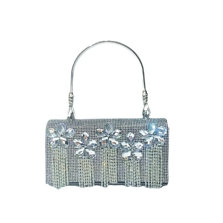 Wholesale Gold Silver Black Polyester Flower Tassel Square Evening Bags