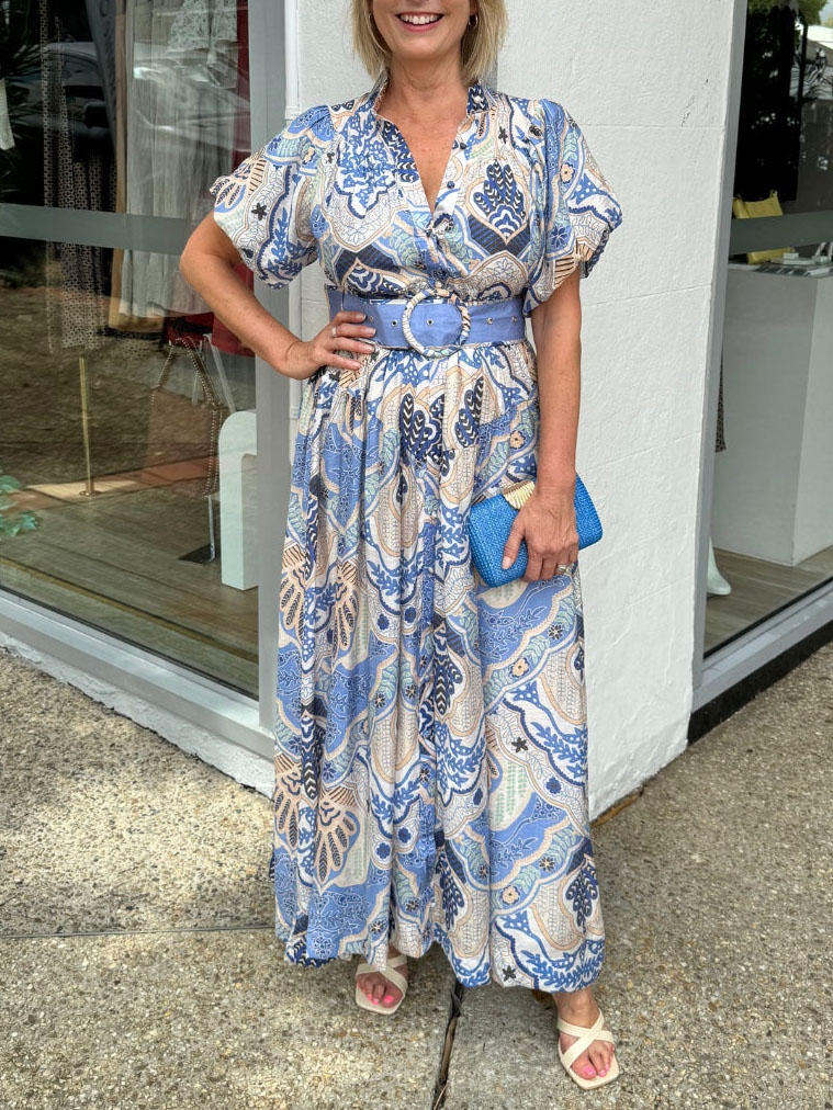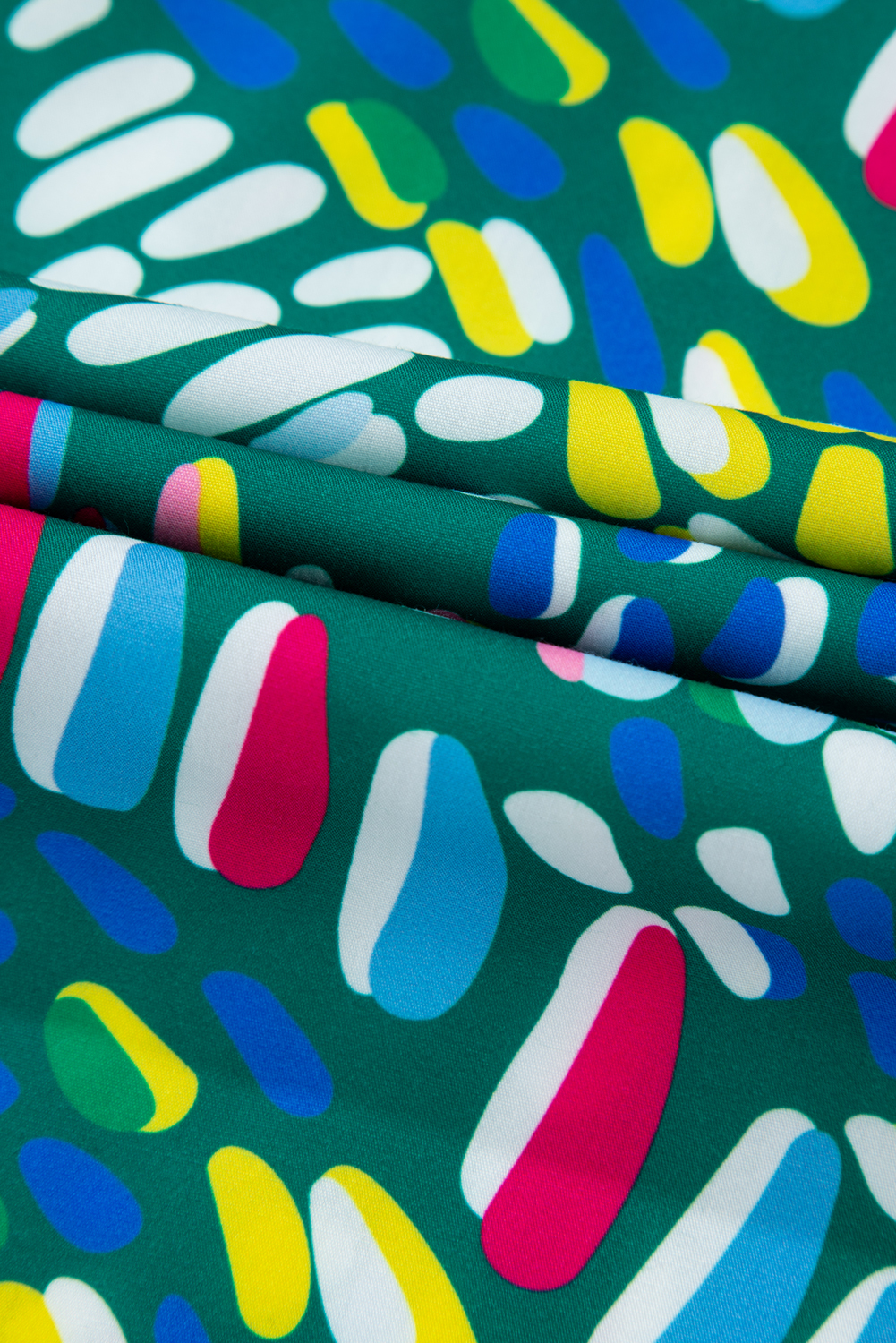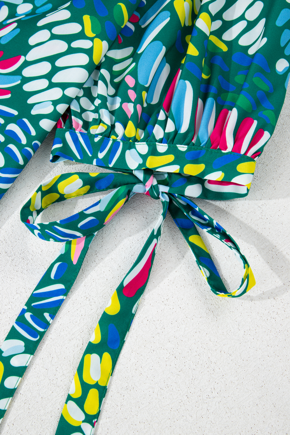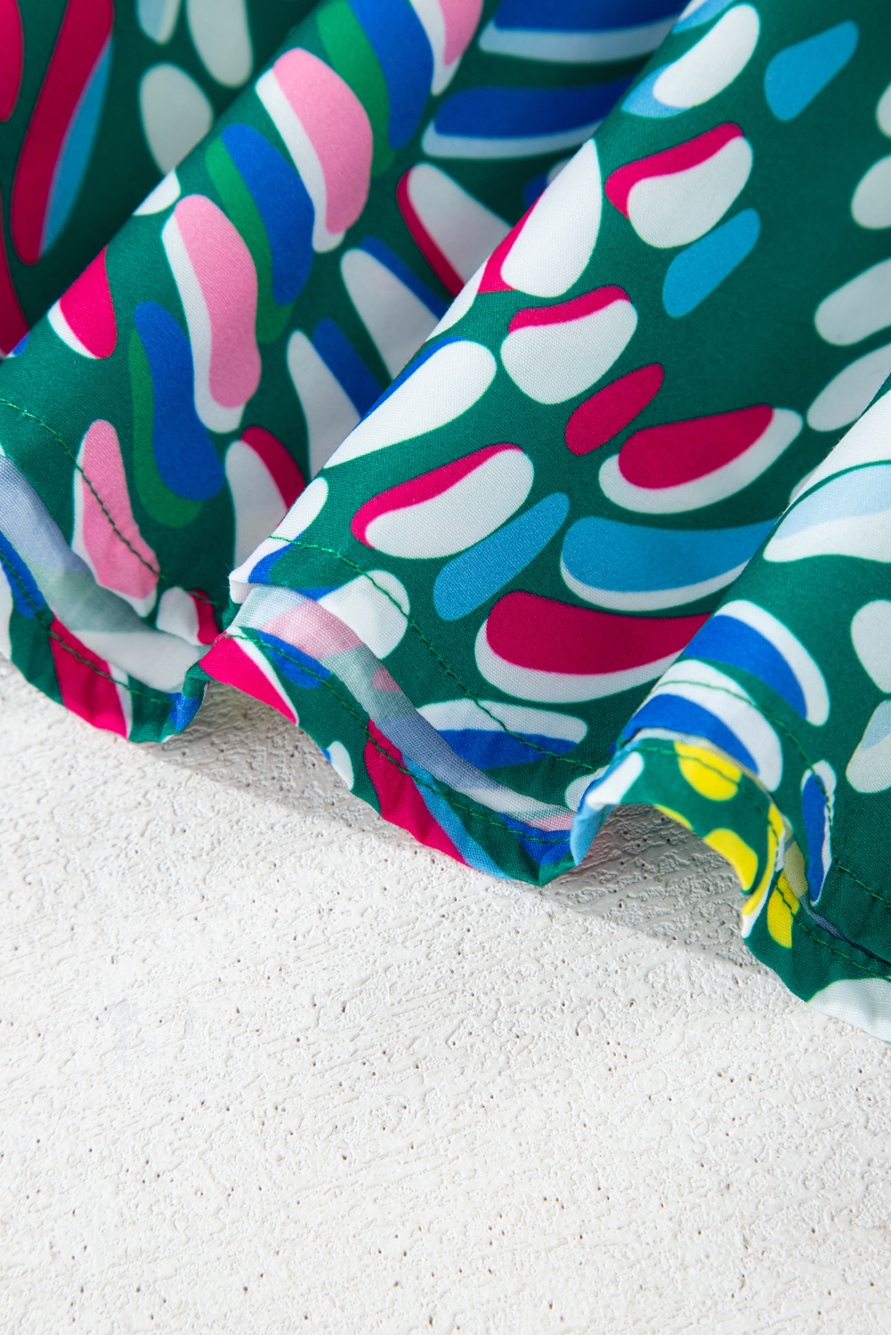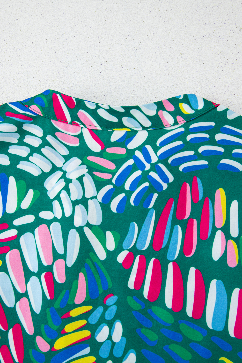 Green Abstract Print Knotted Short Sleeve Plus Size Blouse