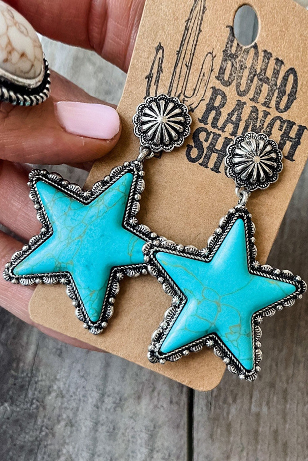 Green Star Dangle Antique Studded Western Earrings