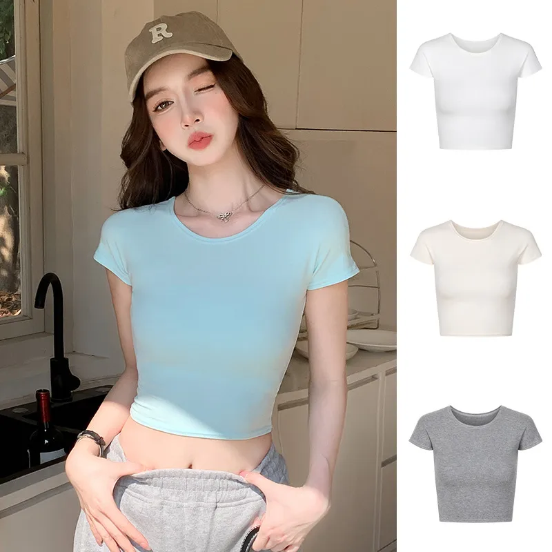 Wholesale H582 Slim-fit Crop Top Design Simple Summer Short-sleeved Sense Casual All-match Short T-shirt Women's New Hot Girls