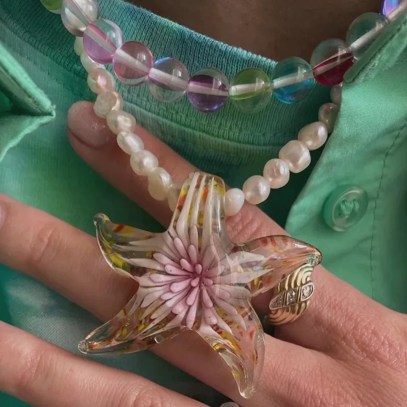 Hawaiian Starfish Imitation Pearl Resin Copper Women's Necklace
