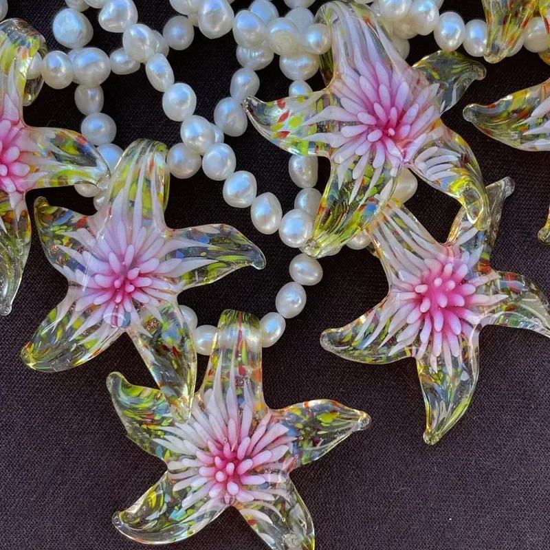 Wholesale Hawaiian Starfish Imitation Pearl Resin Copper Women's Necklace