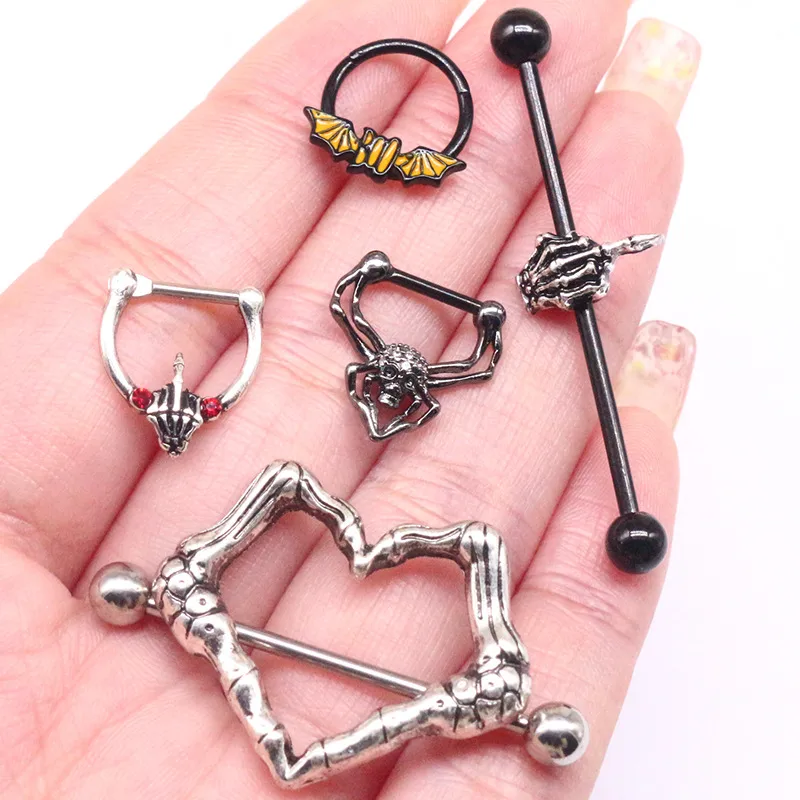 Wholesale hip-hop rock novelty heart shape bat copper stoving varnish plating inlay zircon white gold plated eyebrow nails belly ring nose studs