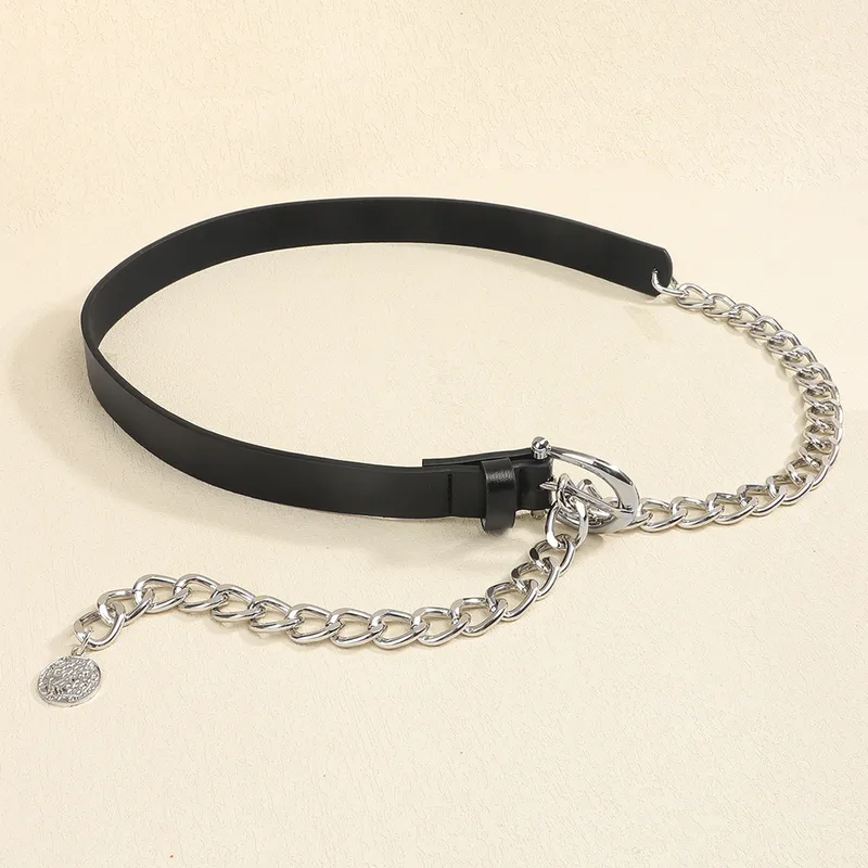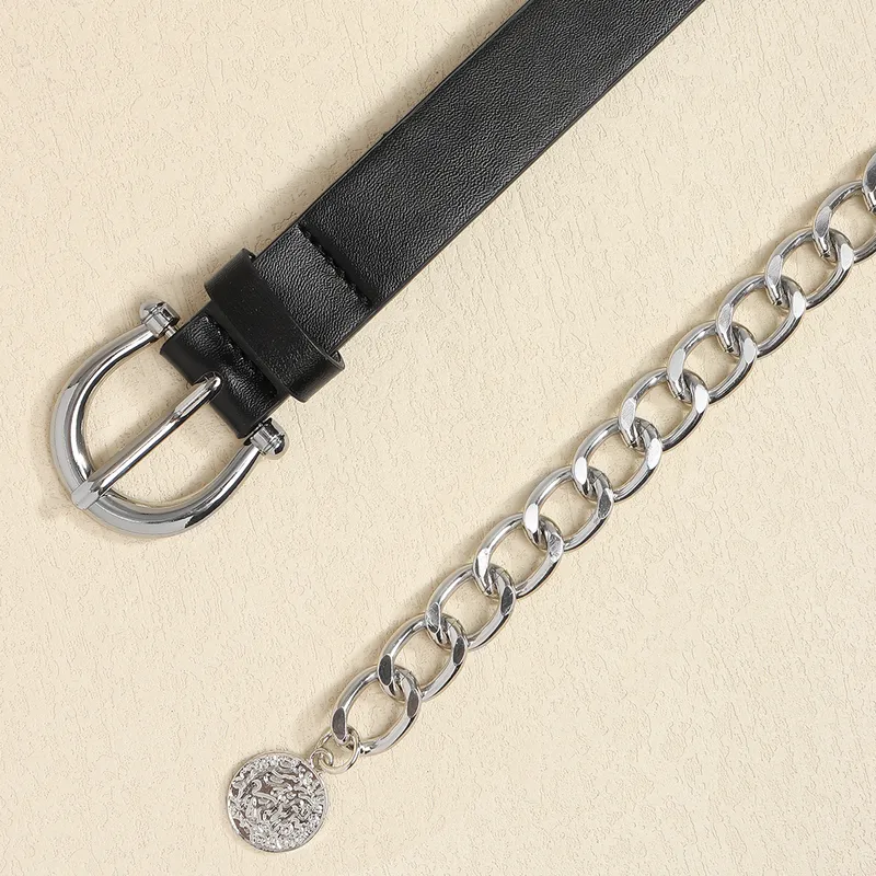 Hip-hop Solid Color Pu Leather Alloy Plating Women's Leather Belts
