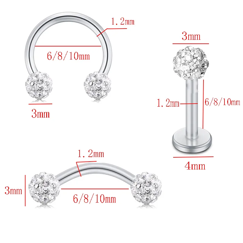 Hip-Hop Vacation Punk Spherical Rhinestone Titanium Alloy Rhinestones Women's Lip Stud