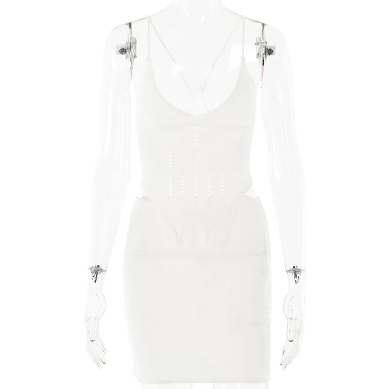 Wholesale Holiday Bar Women's Sexy Streetwear Solid Color Polyester knit Backless Skirt Sets Skirt Sets