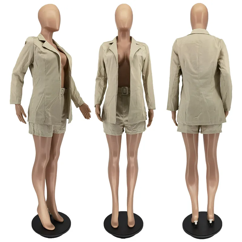 Wholesale Holiday Business Selfie Women's Casual Elegant Streetwear Solid Color Polyester Blazer Suits Shorts Sets