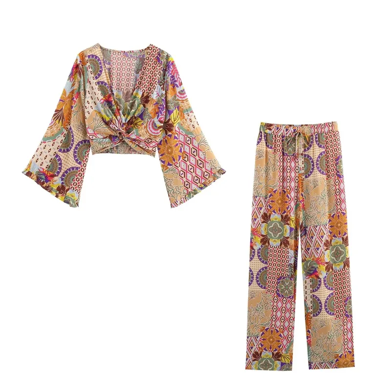 Wholesale Holiday Daily Women's Casual Vacation Printing Polyester Pant Co-ord Set Shorts Sets