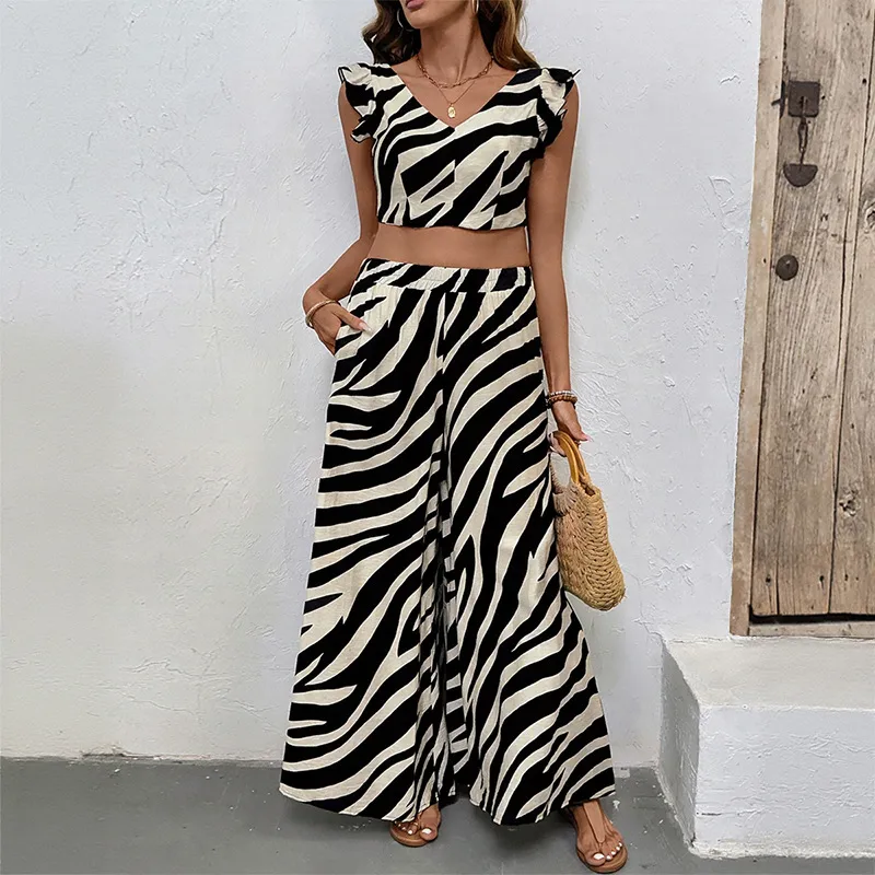 Wholesale Holiday Street Women's Streetwear Zebra Viscose fiber Nylon Pant Co-ord Set Shorts Sets