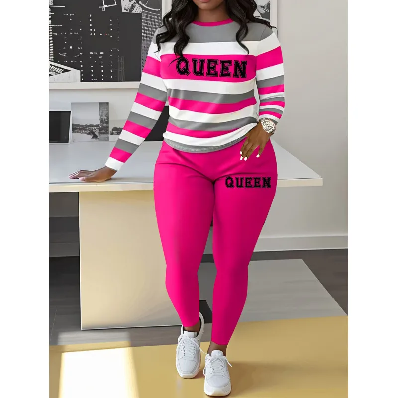 Holiday Women's Streetwear Letter Stripe Polyester Pants Sets Pants Sets
