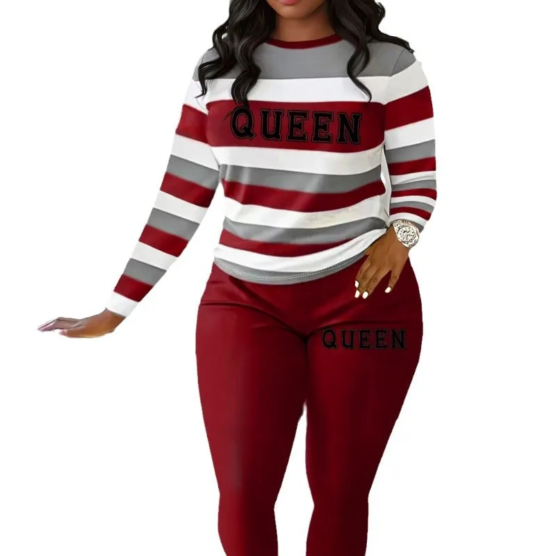 Wholesale Holiday Women's Streetwear Letter Stripe Polyester Pants Sets Pants Sets