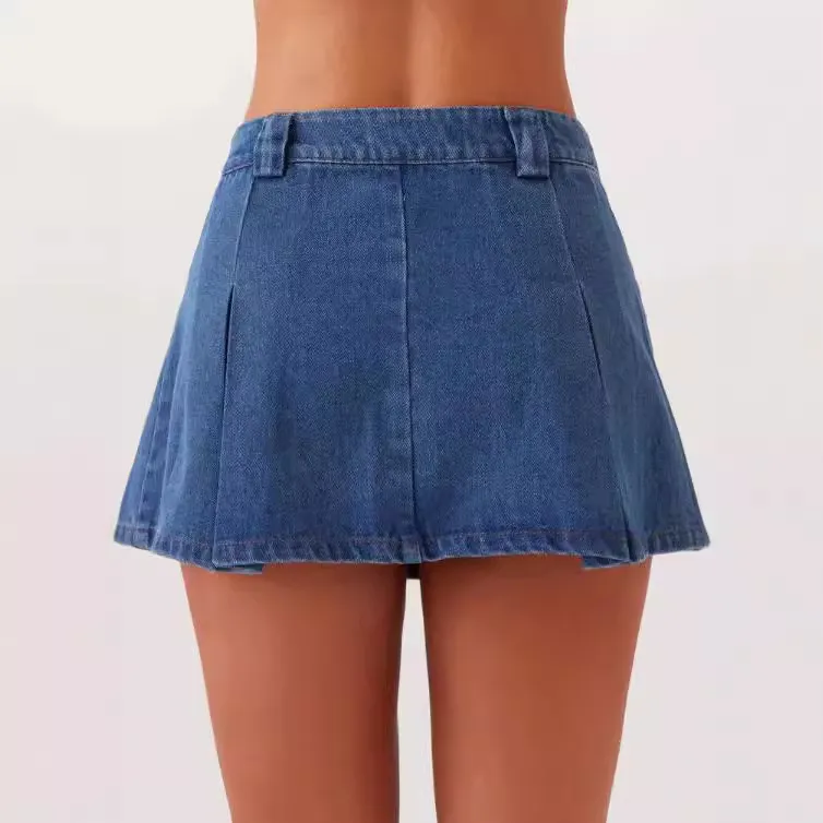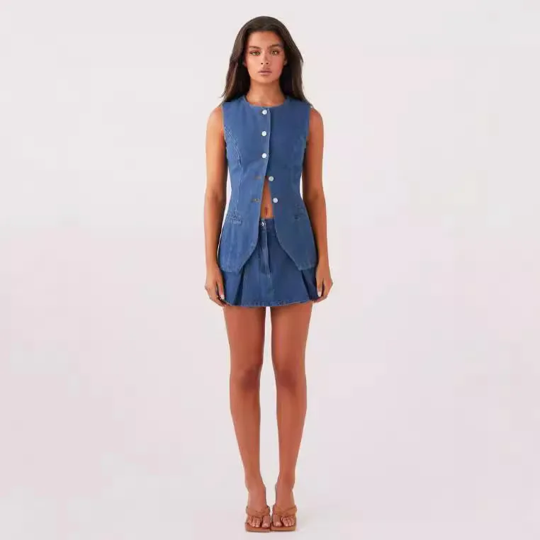 Wholesale Holiday Women's Streetwear Solid Color Polyester Denim Skirt Sets Skirt Sets