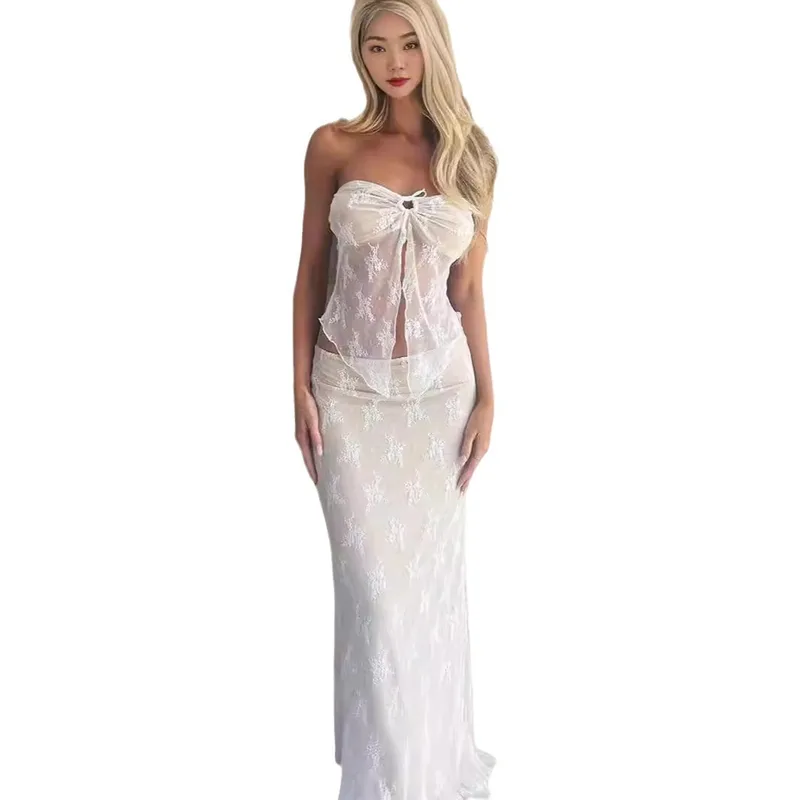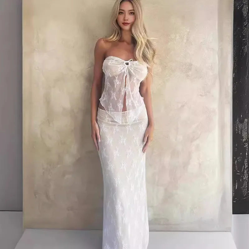Wholesale Holiday Women's Vacation Simple Style Solid Color Polyester Lace Skirt Sets Shorts Sets