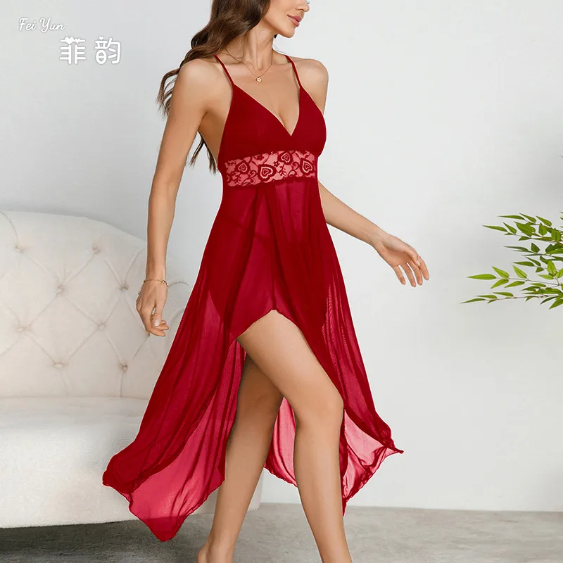 Home Sexy Lace Polyester Mesh Yarn Pajama Sets