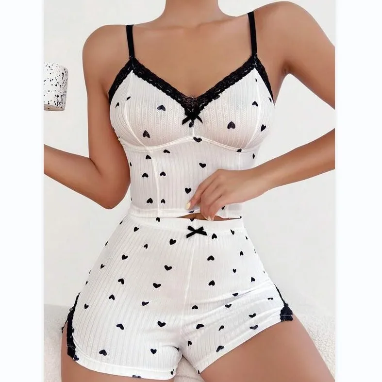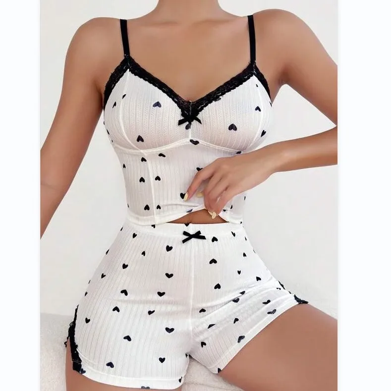 Wholesale Home Women's Sexy Simple Style Heart Shape Lace Polyester Shorts Sets Pajama Sets