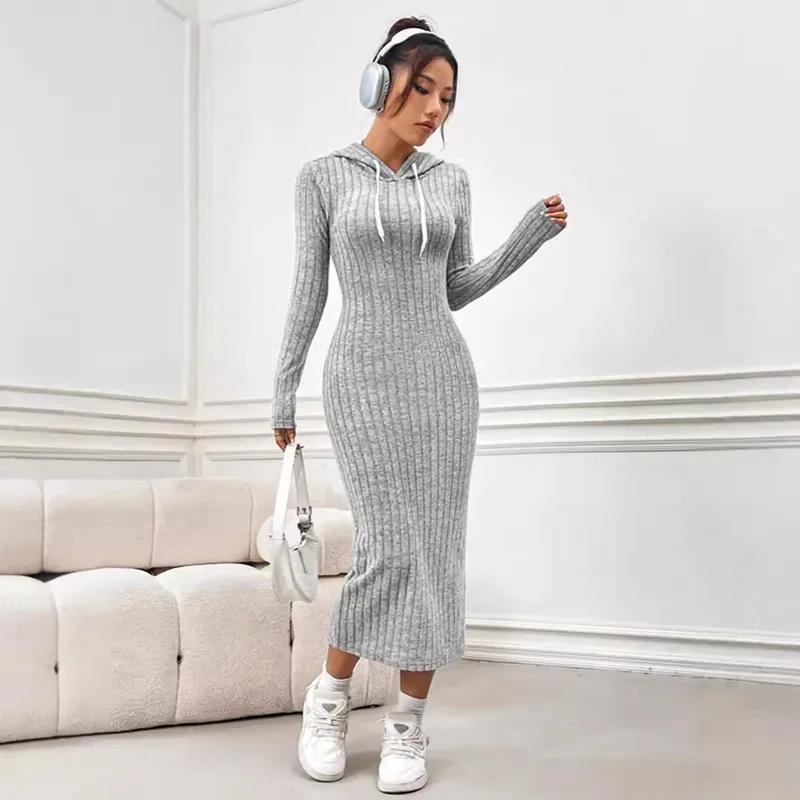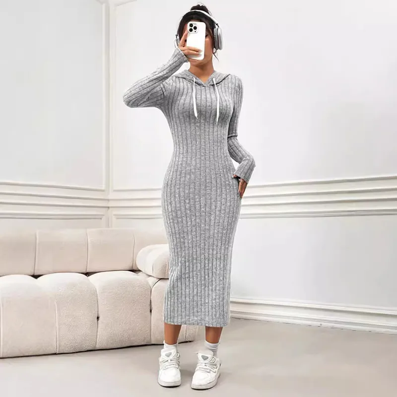 Wholesale Hot Sale Slim-Fit Hood Long Sleeve Sweater Dress