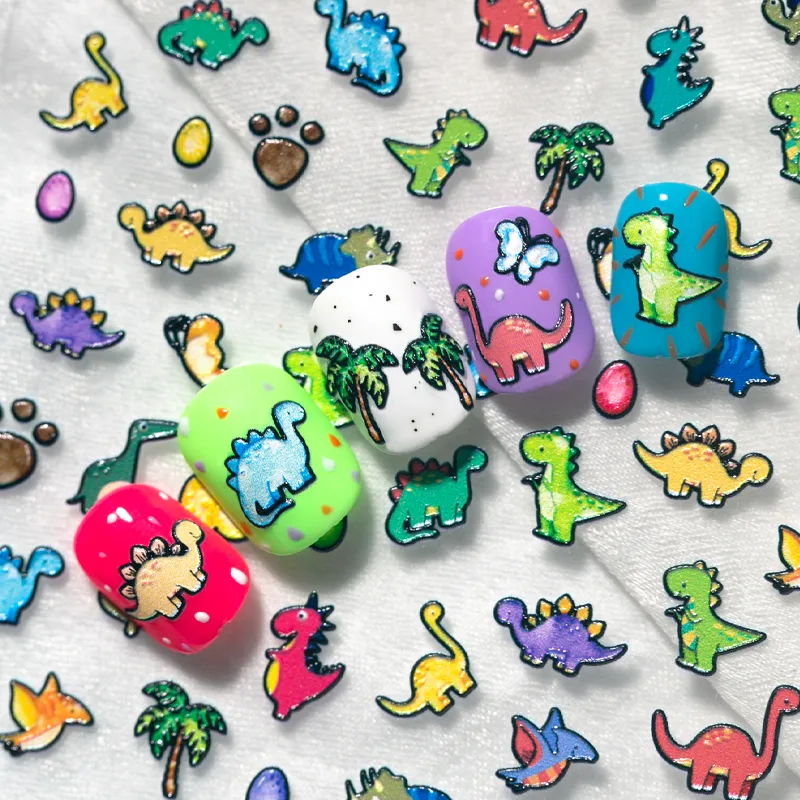 IG Style Cartoon Style Cute Dinosaur Coconut Tree Nail Stickers Nail Decoration Accessories