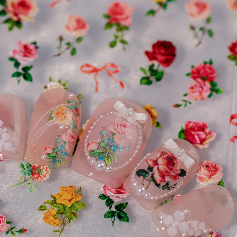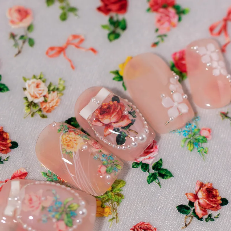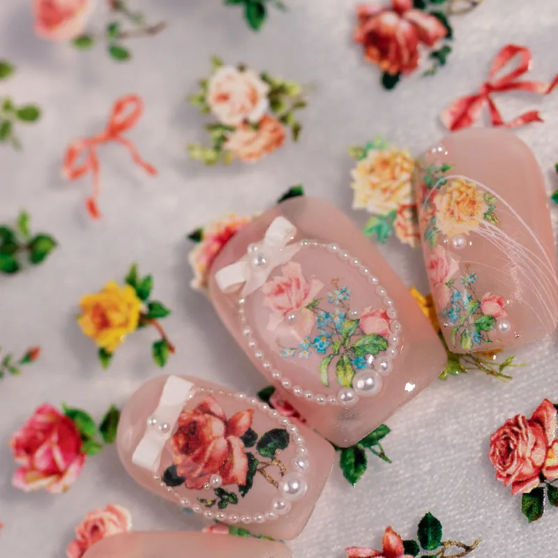 IG Style Cartoon Style Cute Rose Flower Bow Knot Nail Stickers Nail Decoration Accessories
