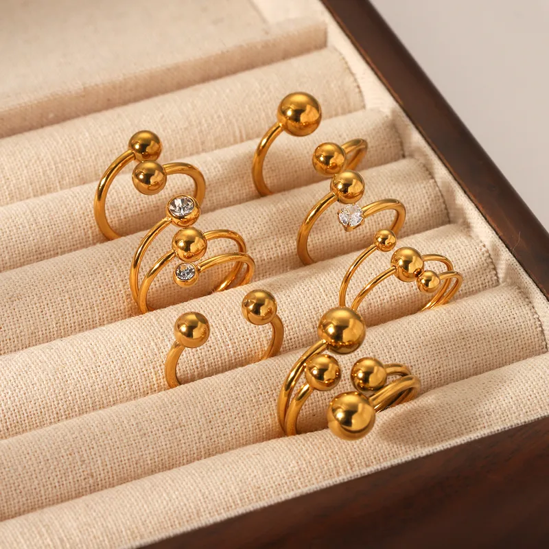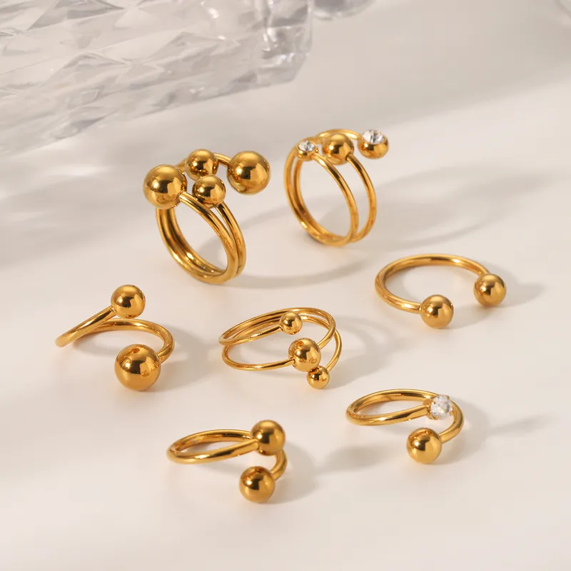 Wholesale IG Style Casual Commute Geometric 304 Stainless Steel Titanium Steel Zircon 18K Gold Plated Women's Open Rings