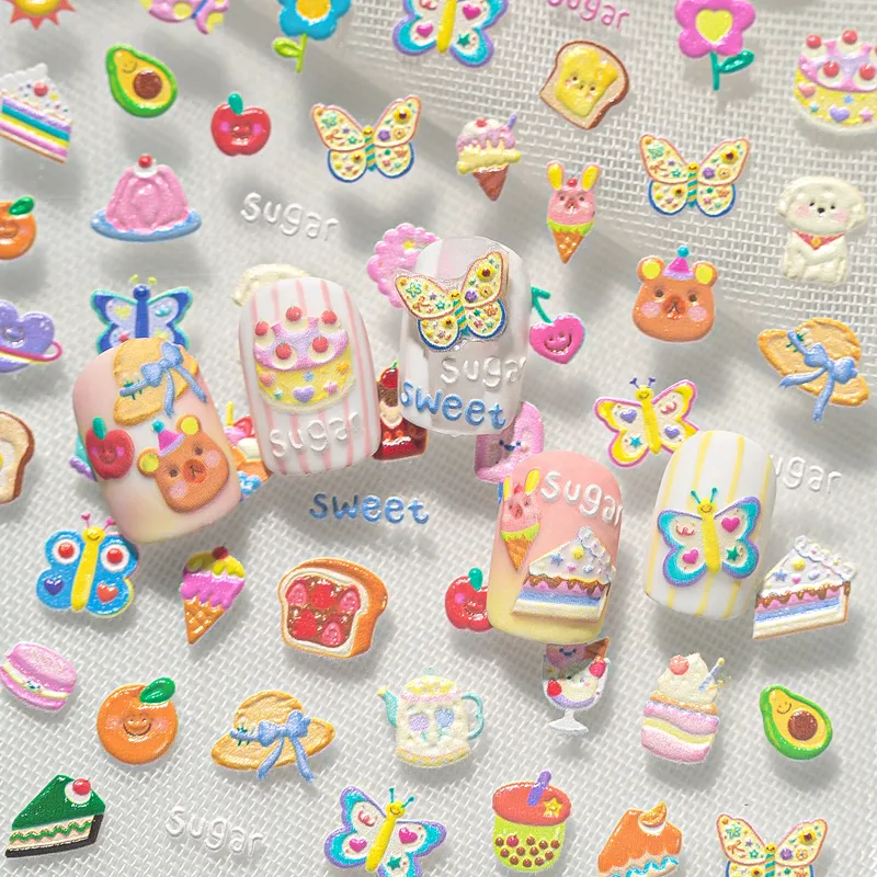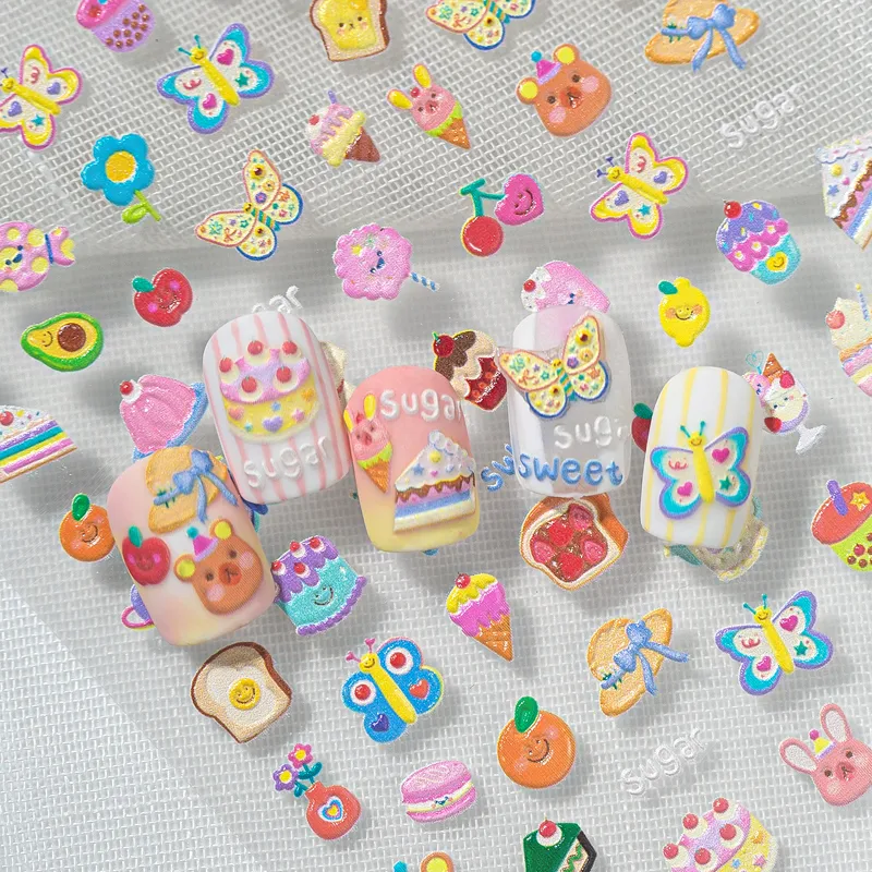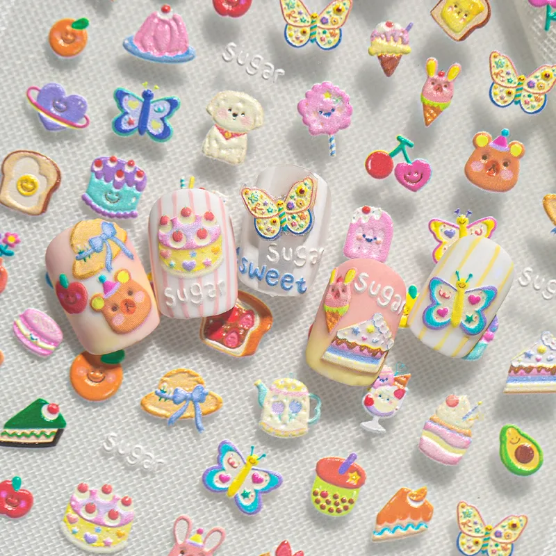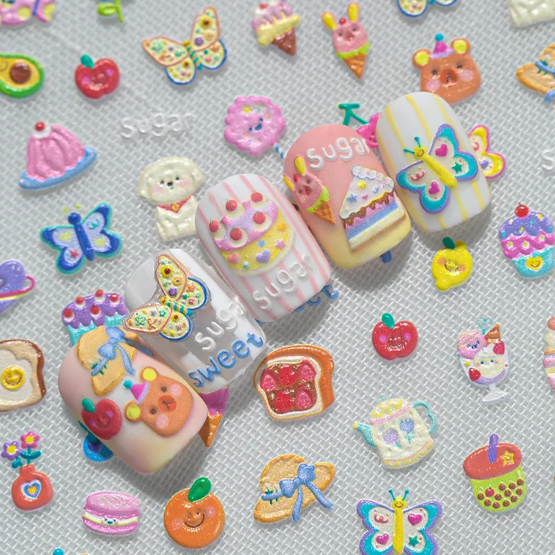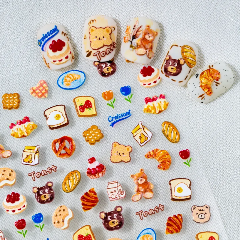 IG Style Cute Sweet Bear Flower Nail Stickers Nail Patches