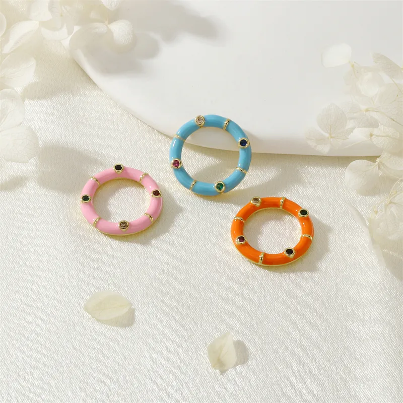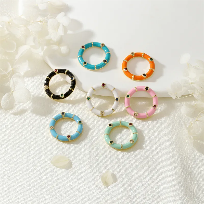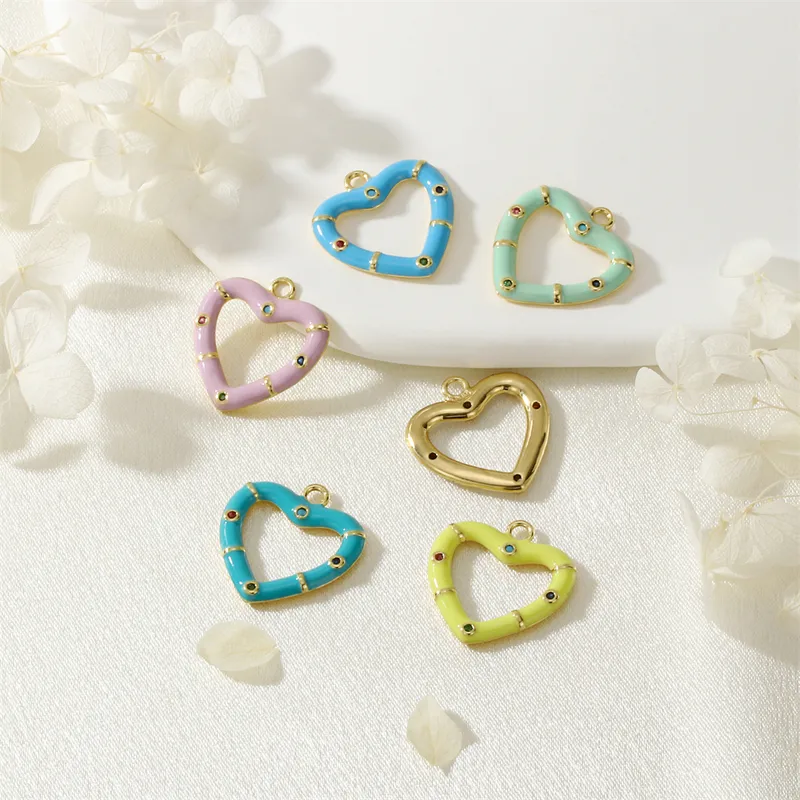 IG Style Simple Style Round Heart Shape Copper Enamel Zircon DIY Ornament Accessories