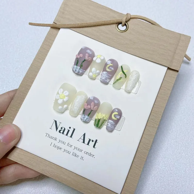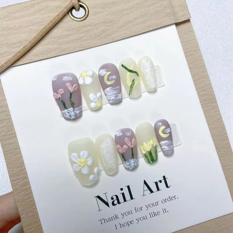 IG Style Sweet Moon Flower Gypsum Glue Press-on Nails