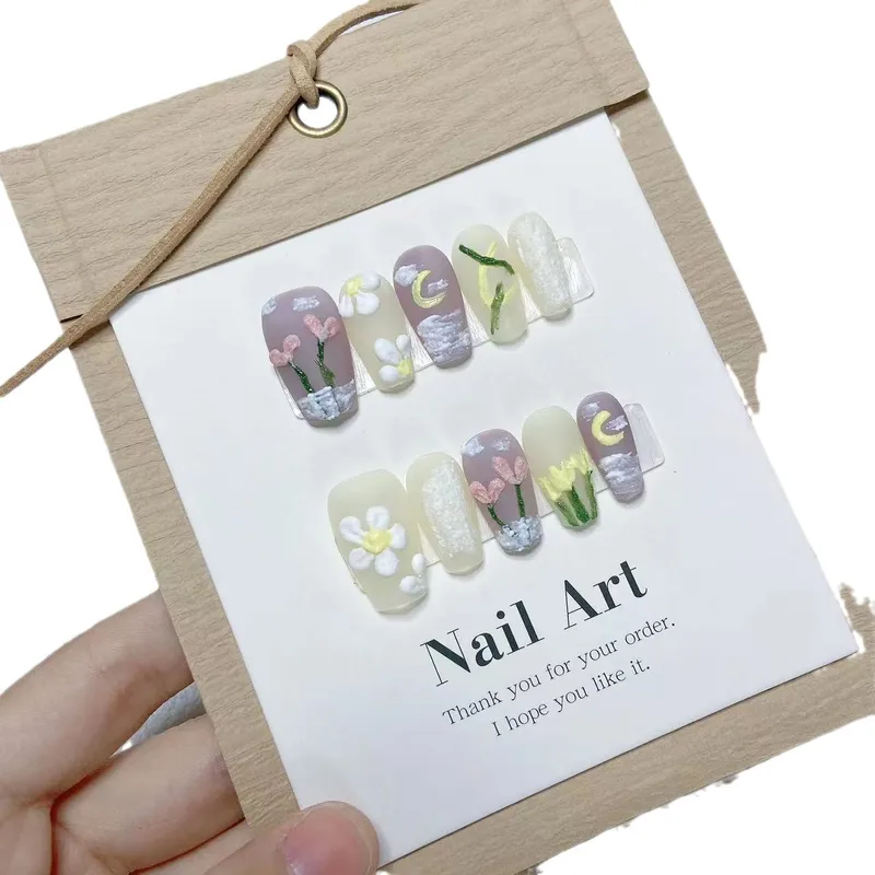 Wholesale IG Style Sweet Moon Flower Gypsum Glue press-on nails