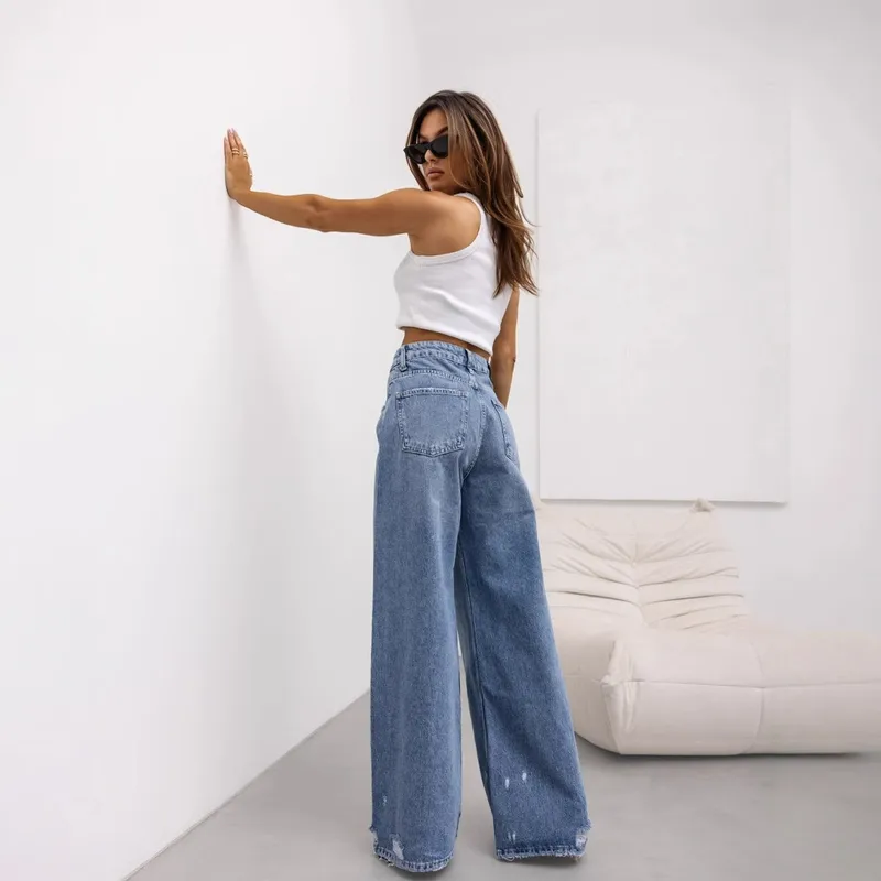 In Stock American Retro Straight Jeans Europe And America Cross Border 2025 Women's Summer New Foreign Trade Wide Leg Trousers For Women