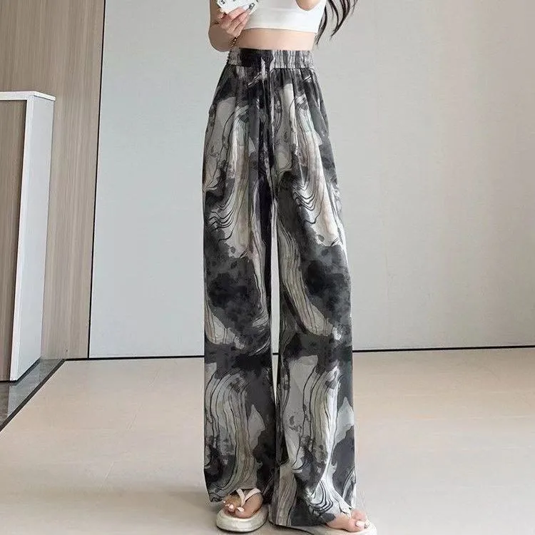 Ink Tie-Dye Wide-Leg Pants Women's Summer Thin High Waist Dummy Loose Straight Pants New Chinese Ethnic Style Trousers
