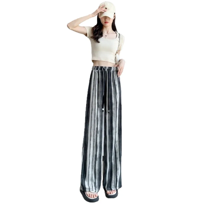 Wholesale Ink Tie-Dye Wide-Leg Pants Women's Summer Thin High Waist Dummy Loose Straight Pants New Chinese Ethnic Style Trousers