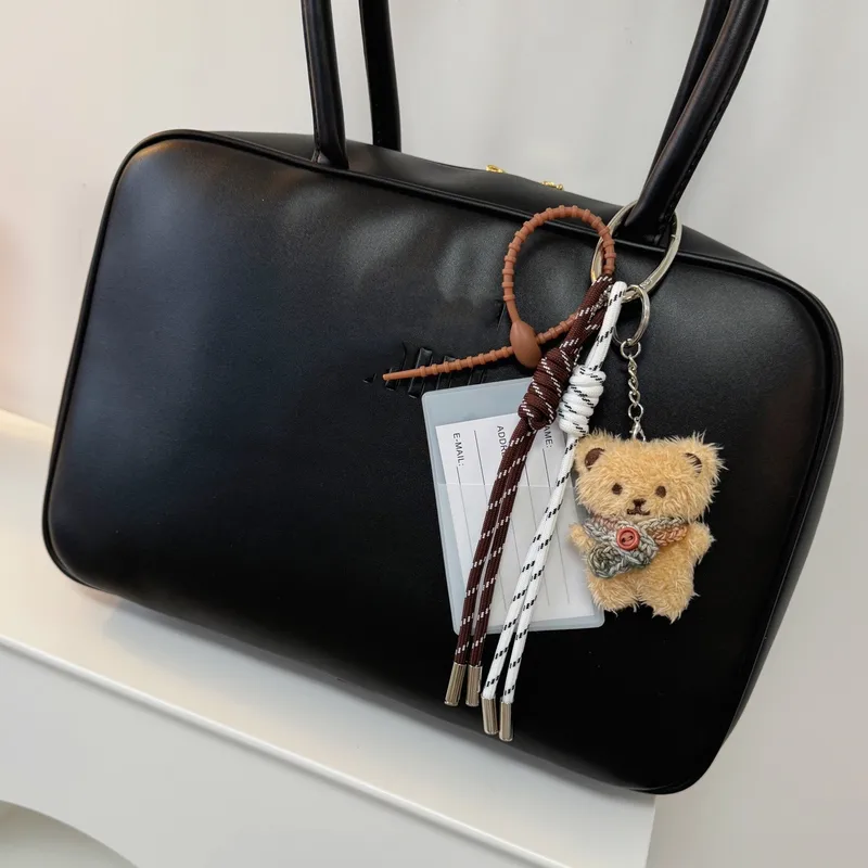 Ins Cute Plush Bear Head Doll Hanging Accessories Mobile Phone Case Bag Keychain Autumn And Winter Doll M Pendant