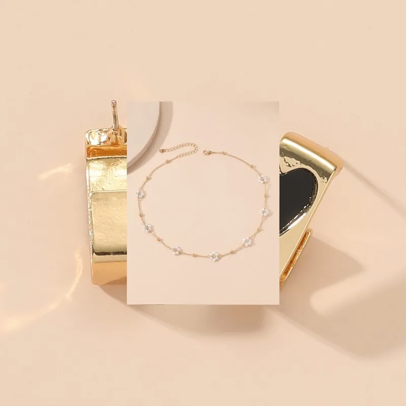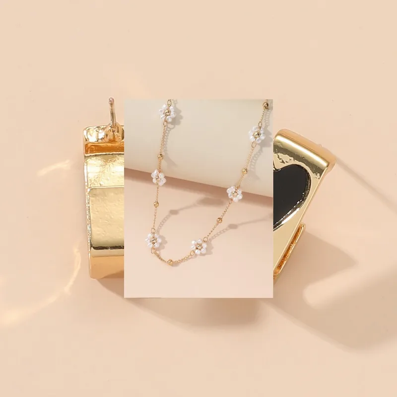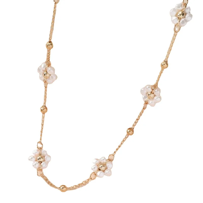 Wholesale ins style sweet flower alloy pearl plating women's necklace