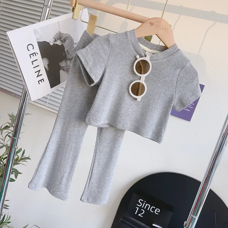 Wholesale Internet-famous children's clothing summer girls suit Korean casual soft female baby short sleeve T-shirt jacket two-piece set