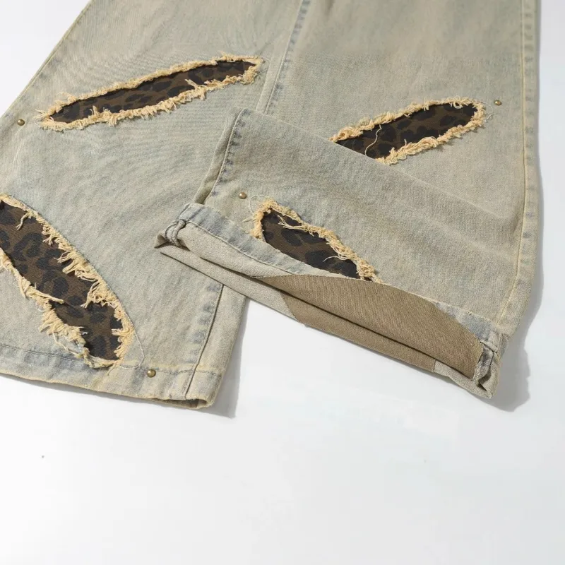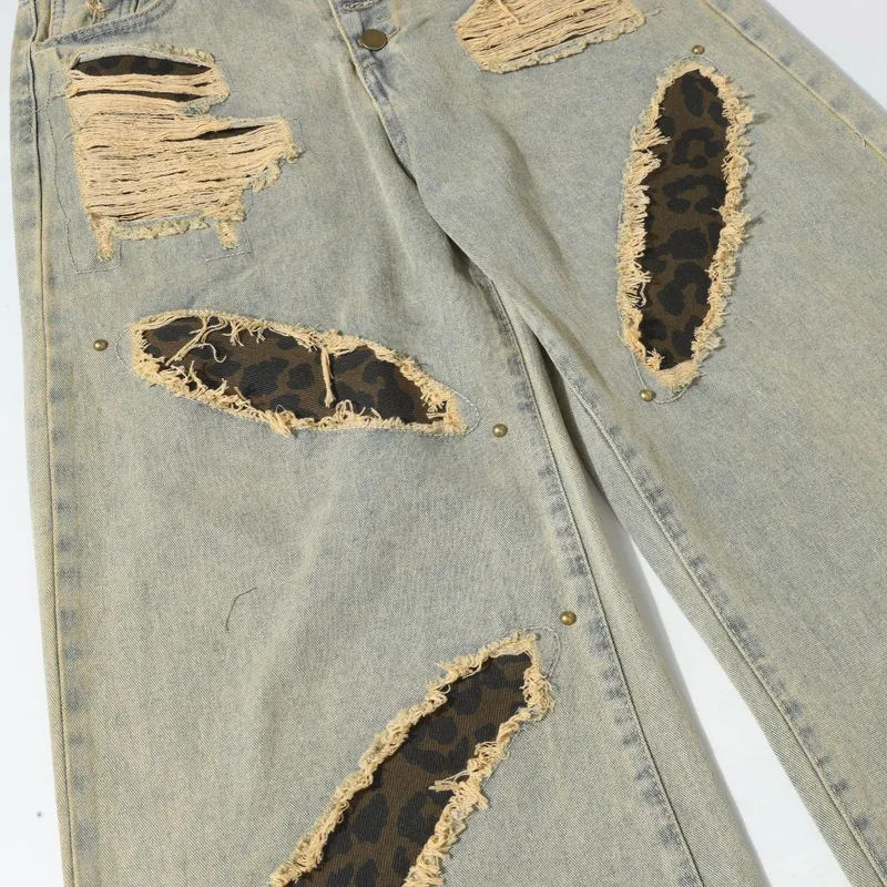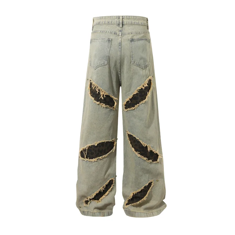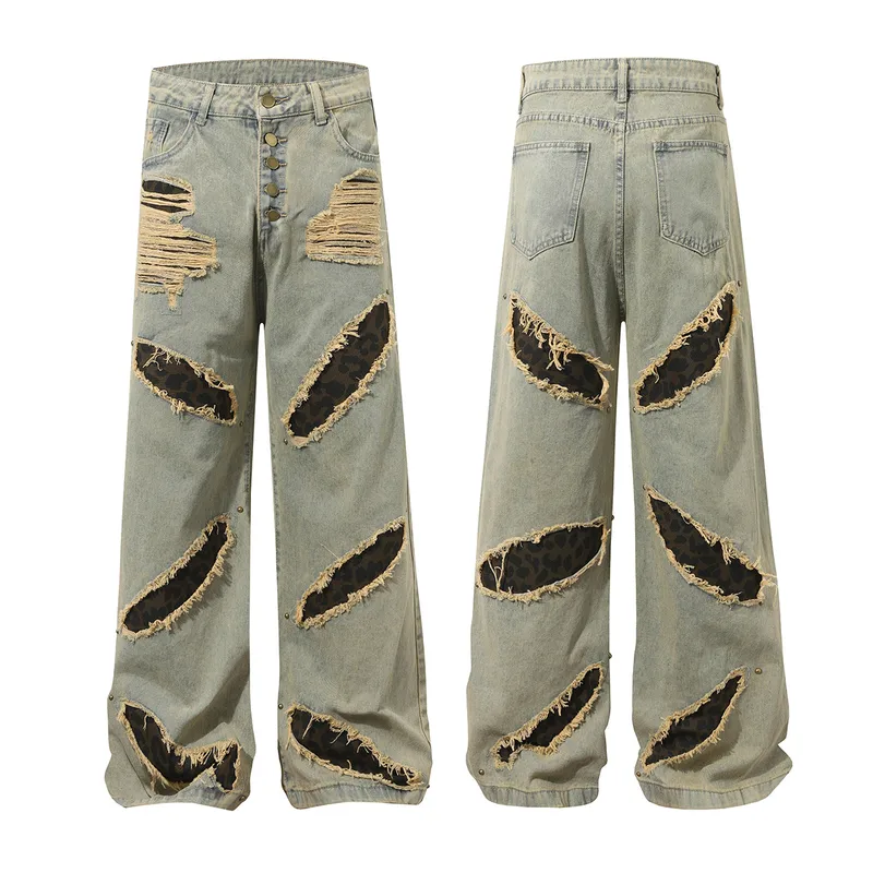 Wholesale Jiayi Library Men's New American High Street RO Heavy Washed Ripped Washed Jeans Wide Leg Pants