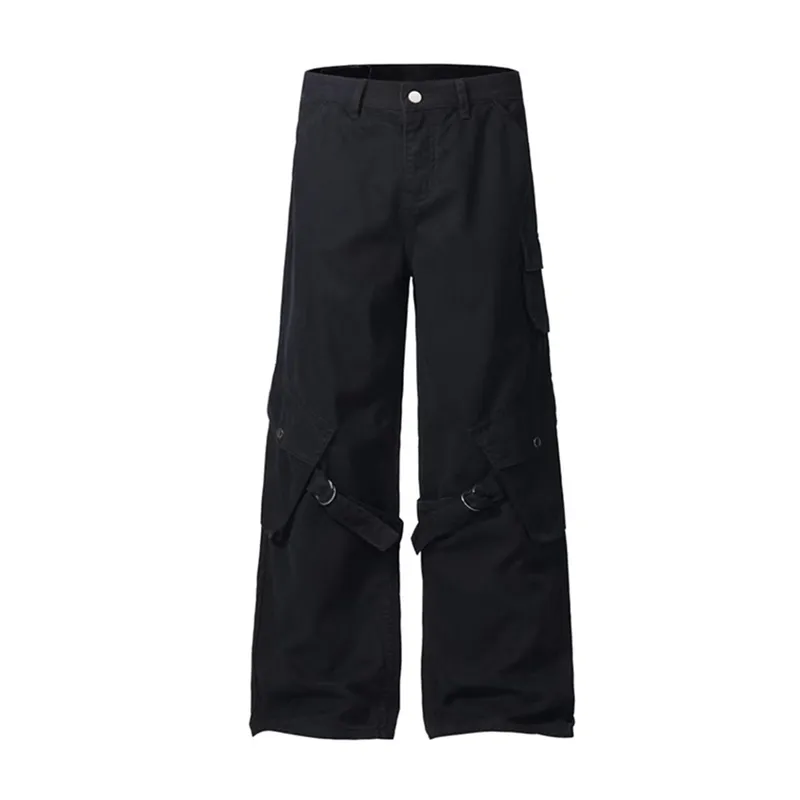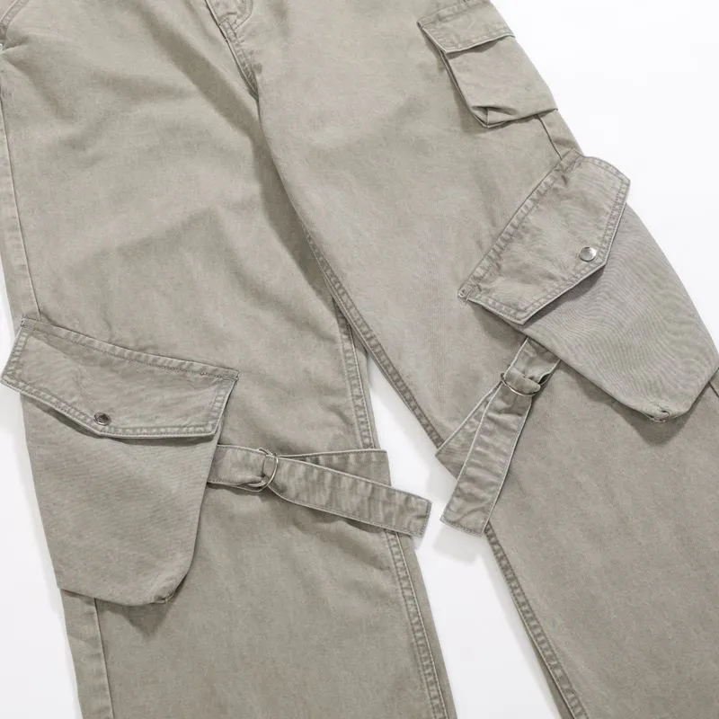 Jiayi Library Men's Spring High Street American Style Retro Washed Multi-Pocket Caught Pants Straight-Leg Wide-Leg Casual Pants