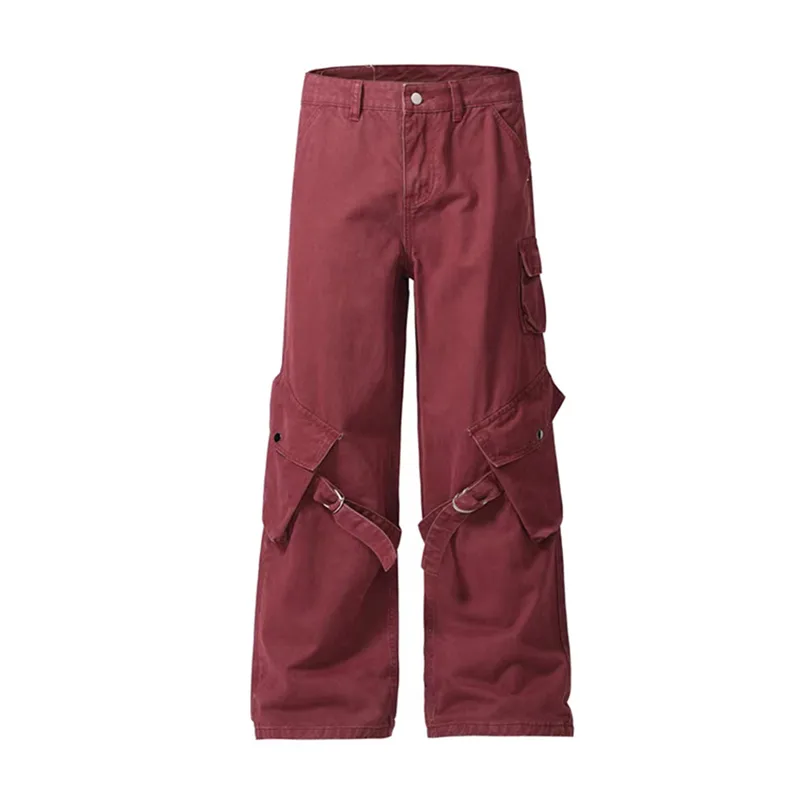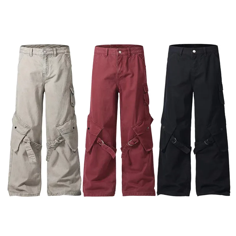 Wholesale Jiayi Library Men's Spring High Street American Style Retro Washed Multi-Pocket Caught Pants Straight-Leg Wide-Leg Casual Pants