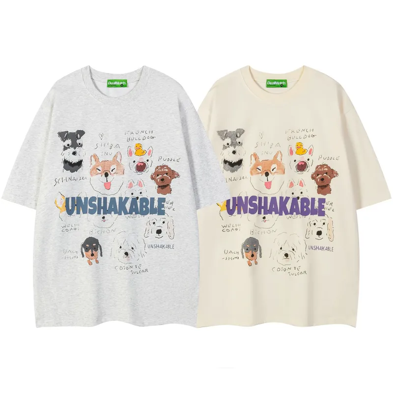 Jiayiku Fashion Brand Summer New American Style Retro Fun Cartoon Printed Couples Short-sleeved T-shirt Loose Men