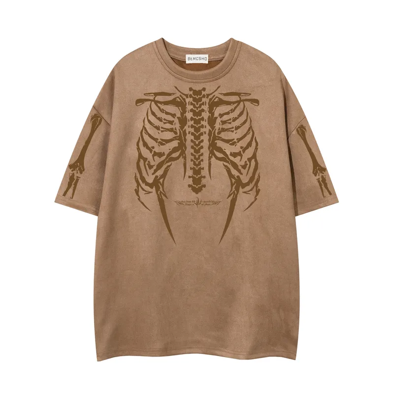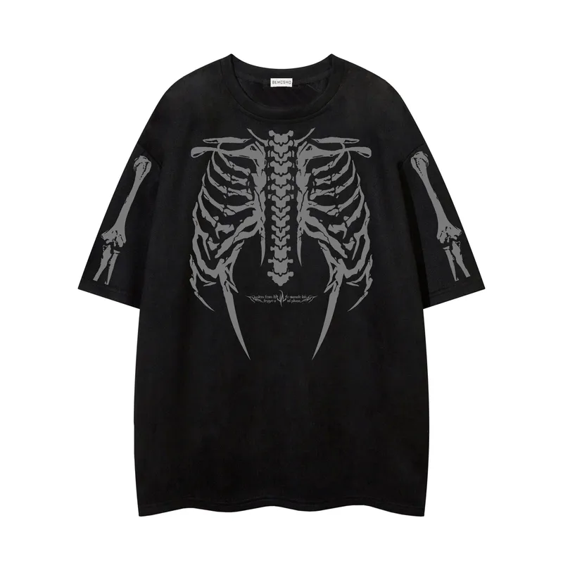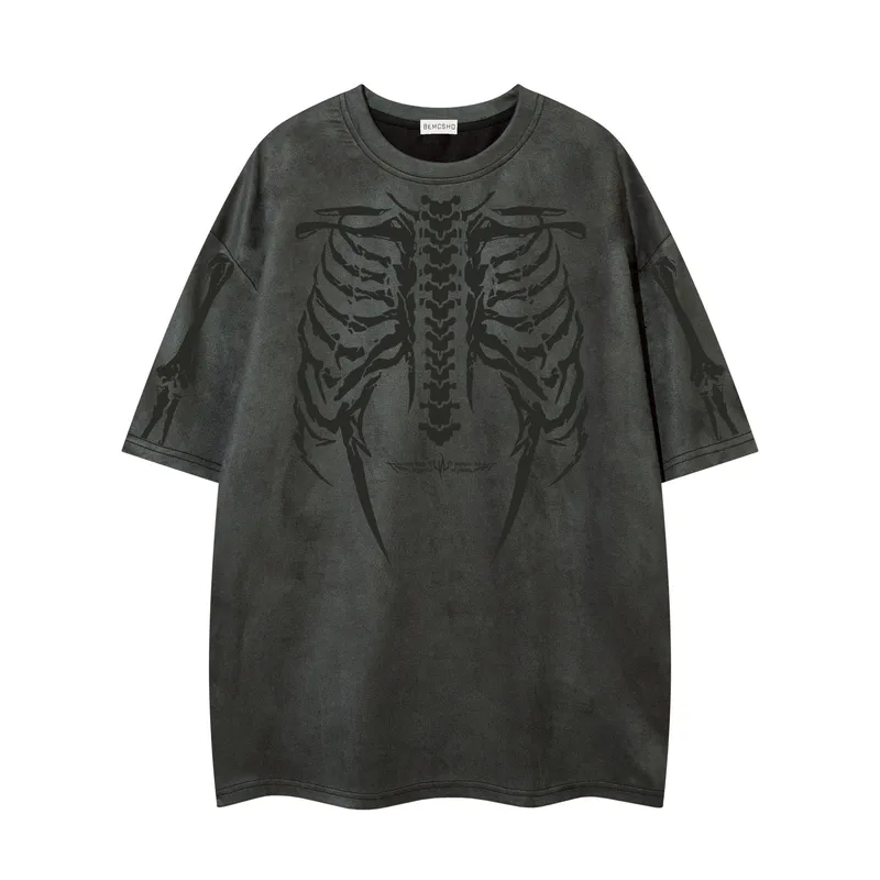 Wholesale Jiayiku Men's American Street Dark Tide Brand tee Skull Skeleton Printed Suede Short-sleeved T-shirt for Men