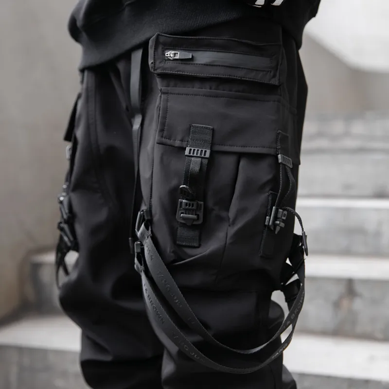 Jiayiku Men's Clothing Chinese Fashion Functional Ribbon Overalls Dark Concealed Tactical Multi-pocket Ankle-tied Pants