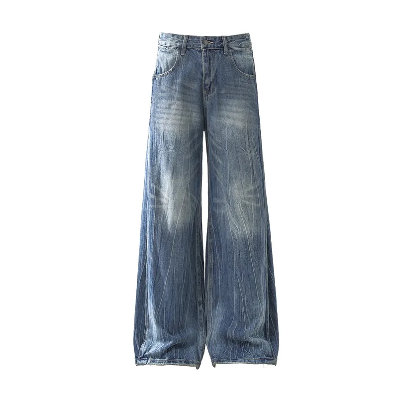 Wholesale Jiayiku Men's New American Style Vintage Washed Spray Maliu Micro-La Jeans Men's and Women's Loose Straight Pants